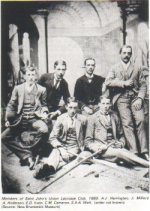 The following is an excerpt taken from the book "Saint John A Sporting Tradition 1785 - 1985" authored by Brain Flood and published by Neptune Publishing Co. Ltd. "The man responsible for the introduction of lacrosse to Saint John was Adam Bell. In April of 1889, Adam and a number of interested young men got together and formed the Union Lacrosse Club. Shortly thereafter, the Y.M.C.A. and the Beavers also formed a lacrosse club. By the early summer, a number of games were being played between teams from these three clubs. Probably the most exciting event of the year took place in late July, when a grand exhibition was being held in Saint John. For the event, Mr. Bell brought in the famous Chaughnawaga Indian lacrosse Club. Two matches were played between an All-Saint John squad and the Indians. The first game was played on the Barrack Green while the other match took place on the old Shamrock grounds. Surprisingly, the local men did extremely well against their renowned opponents.The Indians captured game one, but were upset in the second contest by a score of 3-2. The year 1890 was an exciting year for local lacrosse. In the spring, a city league was formed, composed of the Y.M.C.A., Beavers, and the Unions. During the course of the season, the Unions emerged as the strongest team, partly due to the fact that the Unions benefited from a number of players who had learned the game while attending college in Ontario. The games attracted the attention of local sporting fans. Besides that, the Upper Canadians began to take an interest in the fact that the boys from down east had started to play the national game. This lead to a trophy being sent down by the Montreal firm of H.A. Nelson & Son. The large silver cup was to be played for by maritime lacrosse teams. The winner was to be declared the Tri-province champion. Six lacrosse teams existed in the Maritimes in the year 1890. In addition to the three Saint John teams, there was one each from Pictou, Springhill, and Halifax.In the fall of that year, the Unions traveled to Moncton to compete for the Nelson Cup and defeated Pictou to capture the trophy. When the Unions returned to Saint John, they were faced with the challenges from both the Y.M.C.A. and the Beavers. A number of superb games were played between the three local squads. However, the Unions retained possession of the cup. The game of lacrosse continued to be played during the early 1890's. During this time period, a number of games were played with Moncton, Truro, and Halifax. Although Saint John fielded first class teams, interest and enthusiasm for the game dwindled. In fact, by 1895 the game had all but disappeared."